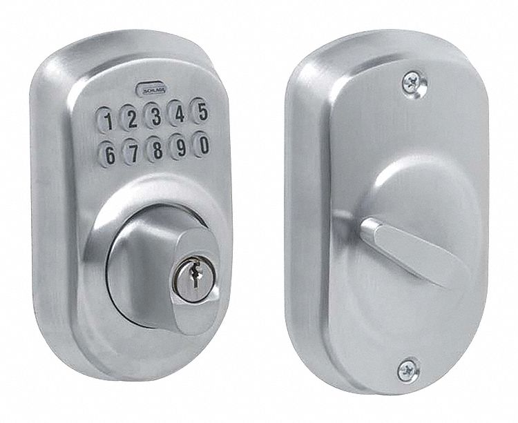 Schlage is the leading producer of keyless entry systems for residential entry doors their most popular keyless entry lock sets use a 10 key mechanical keypad that opens the lock when you push buttons to enter a 4 digit code you program into the lockset.