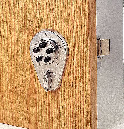Kaba simplex 900 series model 922 is a light commercial residental mechanical pushbutton deadlocking spring latch auto matically relock each time the door closes no wiring and no batteries easy to install and easy to maintain.